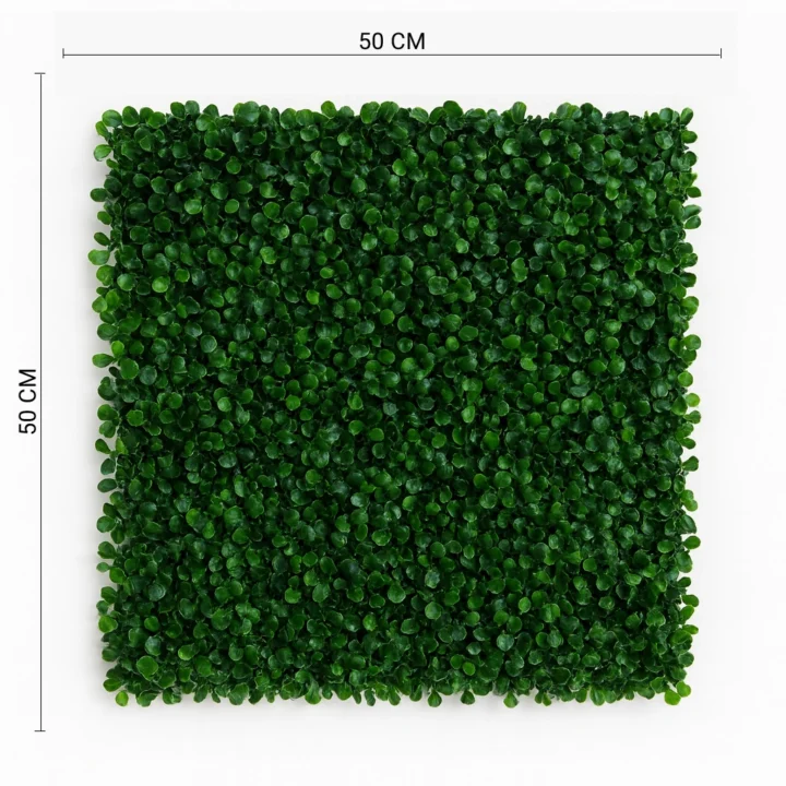 This 50×50 cm artificial boxwood panel features dense, glossy leaves for a fresh and vibrant natural look. Made with durable, UV-resistant materials, it’s perfect for accent walls, fences, balconies, and interior design projects. The compact structure and rich leaf detail create a realistic green effect that enhances any environment. Easy to install and maintain, it adds a touch of elegance and nature to homes, offices, or event spaces.
