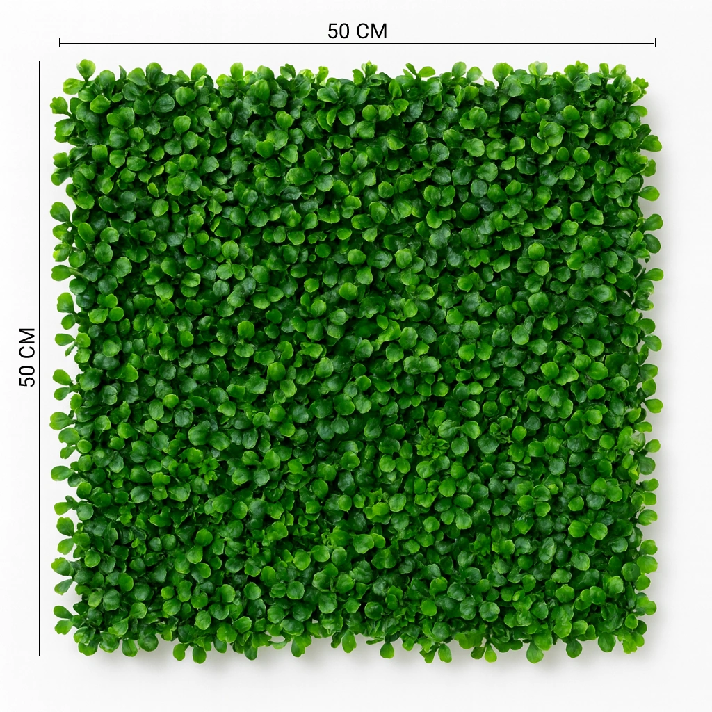 This lifelike artificial boxwood leaf panel is perfect for creating lush green backdrops in homes, offices, and event spaces. Each 50×50 cm panel is densely covered with vibrant, glossy leaves that replicate natural greenery with stunning realism. Crafted from durable, fade-resistant material, it’s suitable for both indoor and outdoor use. Ideal for accent walls, balcony screens, or shop displays, this versatile panel adds a touch of nature and freshness anywhere without maintenance.