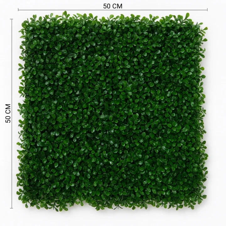 This 50×50 cm artificial boxwood panel features dense, vibrant green leaves for a realistic, natural look. Designed with high-quality, UV-protected materials, it provides long-lasting beauty both indoors and outdoors. Perfect for accent walls, balconies, and garden fencing, the panel’s lightweight and flexible design makes installation easy. Its fine detailing and lush texture create an elegant green backdrop ideal for homes, events, or commercial spaces.