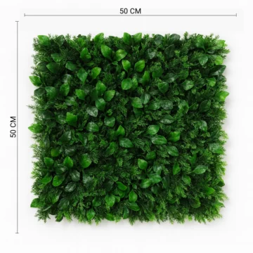 This 50×50 cm artificial mixed foliage panel features a blend of lush oval leaves and fine ferns, creating a realistic and dynamic green texture. Designed with premium UV-resistant materials, it maintains its natural color and vibrancy both indoors and outdoors. Ideal for accent walls, balconies, or commercial interiors, the panel adds depth and freshness to any environment. Easy to install, it’s perfect for modern homes or stylish event spaces.
