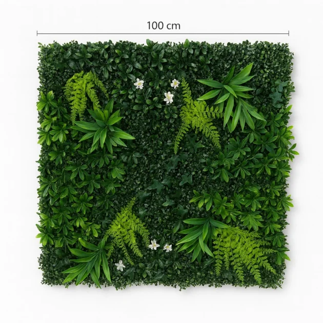 This luxurious artificial green wall offers a lush mix of ferns, broad foliage, and delicate floral accents that create a vibrant, natural-looking display. Designed for effortless installation, it instantly enhances indoor spaces, balconies, event venues, or commercial backdrops with lasting greenery. Its UV-resistant materials ensure the colors remain fresh and vivid, even in sun-exposed areas. Perfect for creating privacy screens, accent walls, or botanical décor, it provides the beauty of nature with zero maintenance.