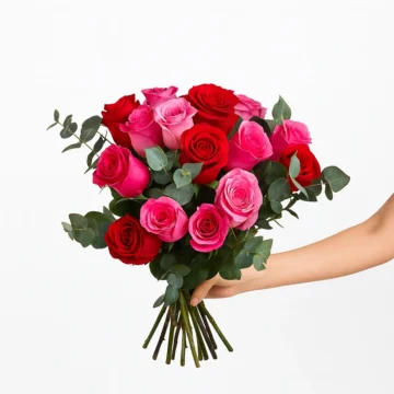 This elegant 12-rose bouquet, featuring a romantic blend of red and pink roses, is designed to express love, admiration, and heartfelt emotion. Each rose is carefully selected for its vibrant color, freshness, and natural beauty, then arranged with lush greenery to create a balanced, graceful look. Ideal for gifting on birthdays, anniversaries, romantic occasions, or simply to brighten someone?s day, this bouquet offers a timeless expression of affection and warmth.