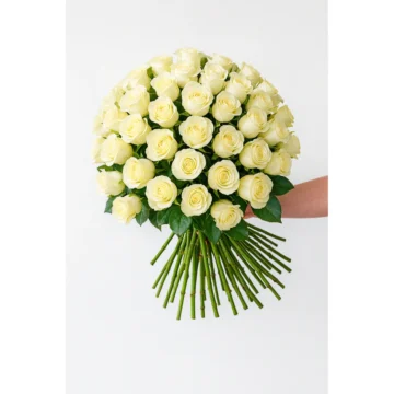 Bright Beauty is an exquisite bouquet of 50 fresh white roses, elegantly arranged to create a full, rounded, and luxurious display. Each rose is selected for its soft creamy tone and velvety petals, offering a serene and sophisticated look. This bouquet is perfect for weddings, heartfelt celebrations, sympathy gestures, or any moment that calls for purity and grace. Its clean, classic style makes it a timeless floral gift that conveys elegance, love, and sincerity.
