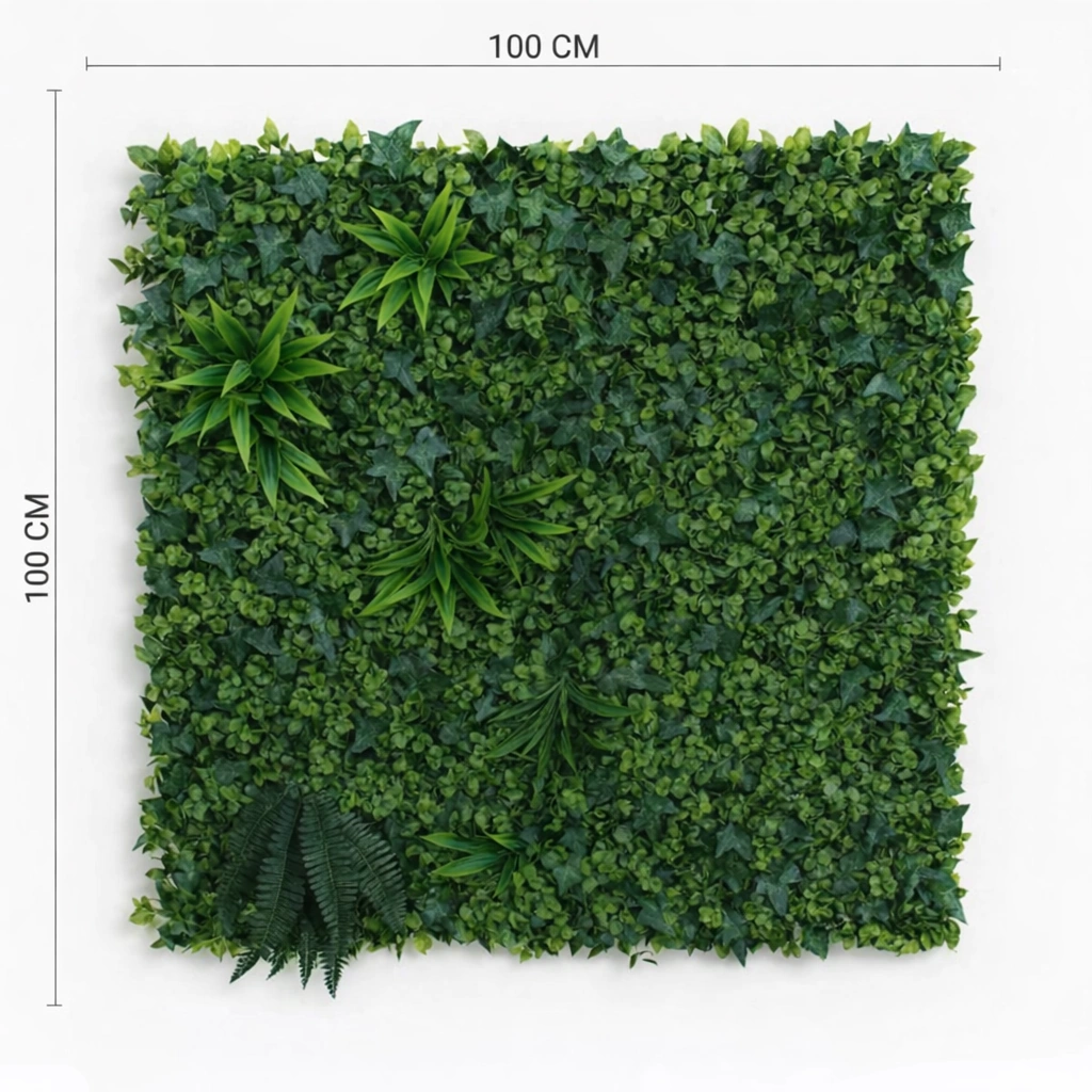This 100×100 cm artificial tropical green wall panel features a rich mix of layered foliage that creates a vibrant and realistic vertical garden effect. Designed with dense greenery and varied leaf textures, it brings the refreshing look of nature to any interior or exterior space without the need for watering or maintenance. The premium-quality materials ensure long-lasting color, durability, and easy installation on different surfaces. Perfect for modern decor concepts, this green wall panel adds depth, elegance, and a lush botanical atmosphere to residential and commercial environments.
