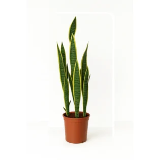 This real Snake Plant features tall, upright leaves with deep green patterns edged in bright yellow, creating a striking vertical display. Set in a classic terracotta pot, it’s an ideal low-maintenance indoor plant known for its air-purifying qualities and modern appeal. Perfect for homes, offices, and minimalist decor.
