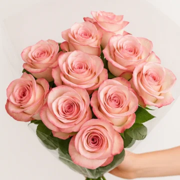 Soft Touch is a charming bouquet of twelve soft pink bi-color roses, beautifully wrapped in clear cellophane to highlight their natural elegance. Each rose features delicate blush tones with deeper pink edges, creating a gentle gradient that adds depth and romantic appeal. Perfect for sweet gestures, celebrations, or heartfelt surprises, this bouquet expresses affection in a refined and graceful way. Its soft color palette and classic arrangement make it ideal for any occasion that calls for warmth and beauty.