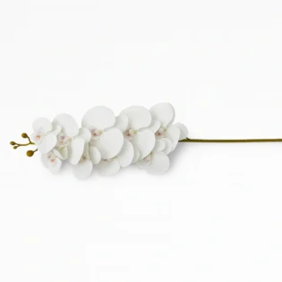 Bring serene beauty to any setting with the 57-1 Artificial White Orchid Stem. This stunning faux orchid features soft white petals with subtle blush accents and delicate detailing, perfectly replicating the elegance of real orchids. The long, flexible stem allows for easy arrangement in vases or floral designs, making it ideal for home decor, weddings, or events. Crafted from premium, fade-resistant materials, it stays flawless season after season ? offering timeless beauty without maintenance.